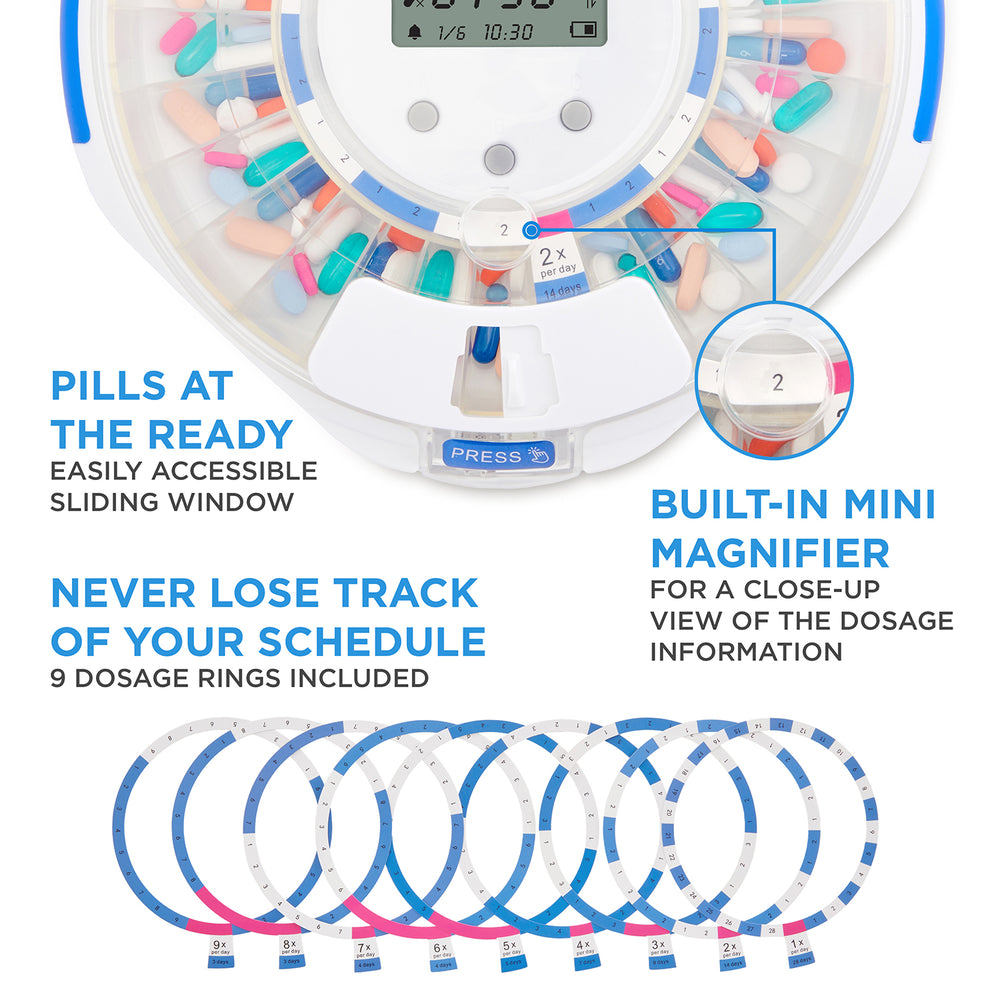 Multiple Reminders: Customize audio and visual device alerts—plus notifications, alarms, and reminders and make missed doses a thing of the past!
