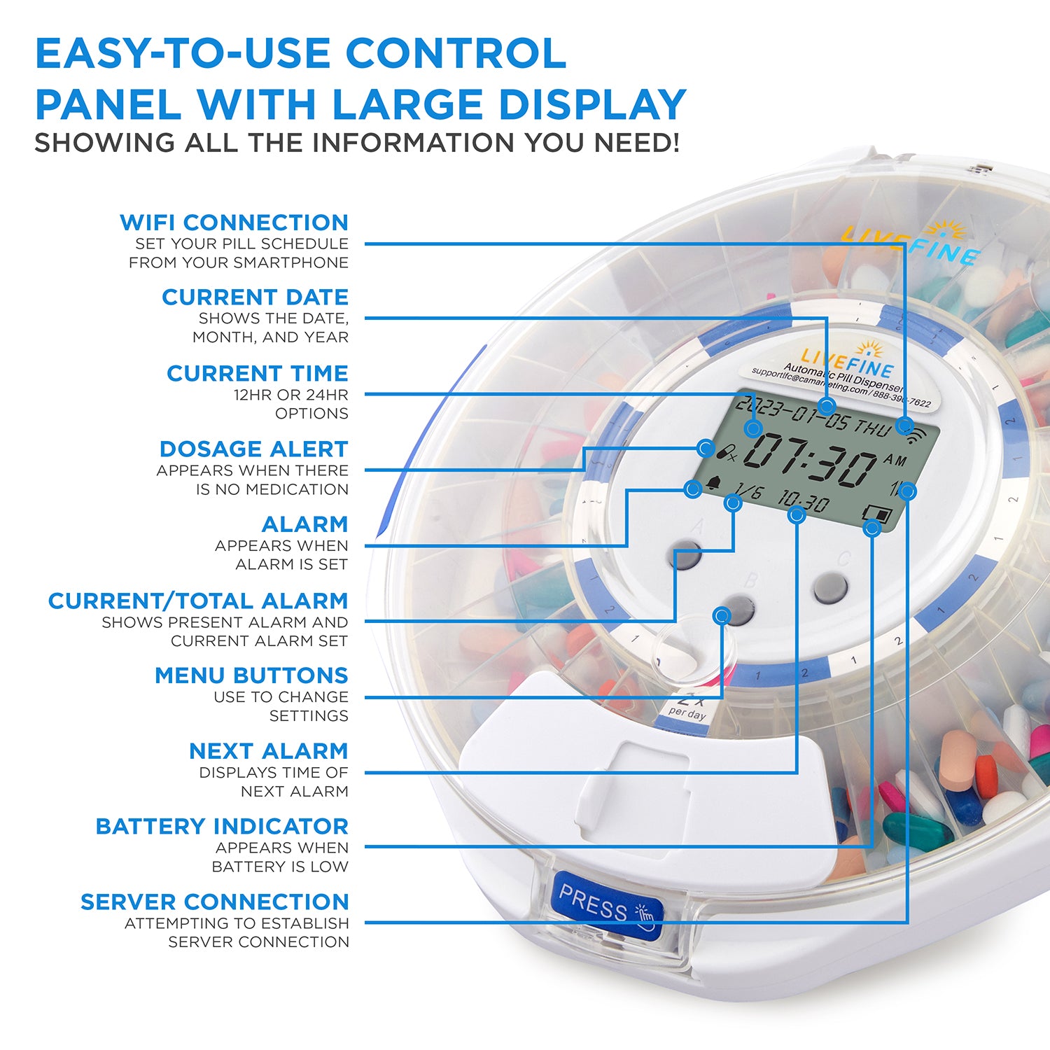 CONVENIENT ONLINE MOBILE APP | The LiveFine Mobile App Makes it Easy to Add a Device, Adjust Dispenser Settings, Set Notification Reminders & Alarms, & Get Quick Monitoring of Medication Schedule | Family Members & Caregivers Can Even Connect to the App To Monitor Your Progress, Send Reminders, and More!
